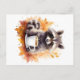 Carte Postale Villes automnales Raccoon avec tasse de café
