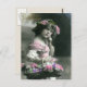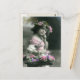 Jolie jeune fille décorée de fleurs colorées/teintées à la main sur cette reproduction carte postale vintage