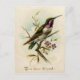 • Passed down from a family collection started by my great-grandfather in England, this digital illustration captures the timeless beauty of a turn-of-the-century postcard. This artwork features a Mexican Star Hummingbird perched on a small branch next to a few delicate purple flowers, with the simple, heartfelt message, "To a dear friend," written below.