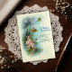 • Transmis de génération en génération depuis la collection familiale commencée par mon arrière-grand-père en Angleterre, cette illustration numérique capture la beauté intemporelle d'une carte postale du début du siècle. Cette œuvre d'art présente deux oiseaux bruns volant au-dessus d'un bouquet de délicates fleurs de cerisier roses et blanches et un poème d'anniversaire sincère.