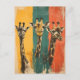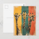 Ce Vintage Trois têtes de girafe sur un fond de vintage jaune, vert et rouge à l'africaine combine la majestueuse beauté des girafes avec des couleurs vivantes et des accents culturels. Les têtes puissantes des girafes se détachent dans un contexte de couleurs africaines typiques, jaune, vert et rouge, qui reflètent la culture et la nature africaines. L'influence de l'Afrique dans le design crée une note exotique et artistique qui capture le flair de la savane africaine. Cette carte postale est parfaite pour les amoureux de la nature, les collectionneurs d'art africain ou pour tous ceux qui veulent apporter un morceau d'héritage africain à leur maison. Un souvenir ou un cadeau unique qui célèbre la beauté sauvage de l'Afrique.