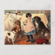 vintage petite fille historique essayant de garder son traitement loin de chiens de compagnie carte postale