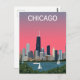 Découvrez l'attrait urbain classique de la ville Windy avec cette carte postale de style vintage. L'oeuvre d'art présente l'emblématique skyline de Chicago, avec des voiliers sur le lac Michigan et une végétation luxuriante au premier plan. Le design stylisé et coloré évoque l'esprit nostalgique du voyage en ville, en faisant un souvenir parfait, une note à un ami, ou une belle pièce d'art rétro pour votre maison.