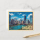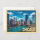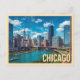 Une carte postale de style vintage, avec ses impressionnants gratte-ciel surplombant le fleuve Chicago, présente l'emblématique horizon de Chicago. Les couleurs vibrantes et classiques et le filtre rétro donnent à cette image une atmosphère authentique d'affiche de voyage, évoquant la riche histoire et la beauté architecturale de la ville. Cette carte est parfaite pour envoyer un message réfléchi, commémorer un voyage à la ville Windy, ou cadrer comme un petit morceau d'art urbain. Un design idéal pour toute personne qui aime l'Illinois, vues de la ville, ou design urbain américain classique.