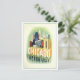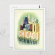 Cette carte postale est une reproduction d'une affiche de voyage vintage de Chicago, montrant le mot "Chicago" reflété sur le lac Michigan.