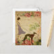 Imprimante rétro, carte postale française de style carte postale avec une femme et un chien sur un arrière - plan à fleurs.