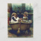 Charmante image couleur vintage de Good Ship Clothes Panier vers 1888. Représente les enfants en train de jouer avec la corbeille à linge comme un bateau avec un balai en paille et un chat tabby.