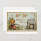 Cette carte postale est la reproduction d'une carte postale vintage d'Halloween qui présente un jack-o-lanterne faisant quelque chose dont je ne suis pas sûr.