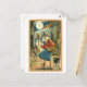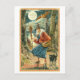 Cette carte postale est une reproduction d'une carte postale vintage d'Halloween, qui présente une sorcière avec un chat noir et une chouette.