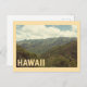 Une carte postale de style vintage avec les paysages de montagne luxuriants, dramatiques et emblématiques d'Hawaï. L'image capture les vallées et crêtes profondes et verdoyantes sous un ciel doux et nuageux. Les couleurs classiques et défraîchies et le filtre rétro donnent à cette carte une ambiance d'affiche de voyage d'époque authentique, évoquant la beauté naturelle des îles. Cette carte est parfaite pour envoyer un message réfléchi, commémorer des vacances sur l'île, ou cadrer comme un petit morceau d'art tropical. Un grand design pour quiconque aime la nature, les îles du Pacifique, ou les paysages uniques de l'État d'Aloha.