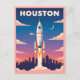 Célébrez l'héritage spatial de Houston avec cette carte postale colorée de style rétro, dotée d'un lancement de fusée au-dessus de la ligne d'horizon de la ville, d'un ciel vif de dégradé du coucher du soleil à la nuit, et d'une typographie audacieuse de style "HOUSTON", parfaite pour les collectionneurs, les amateurs d'espace et les amateurs d'art vintage.