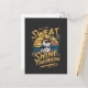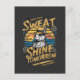 This vintage-style illustration features a confident rabbit in a fedora standing before a retro sunset with bold motivational text that reads “Sweat Today Shine Tomorrow.” The design blends classic workout vibes with a playful twist, highlighted by warm yellow tones and subtle gear accents. Perfect for fitness lovers, retro art fans, and anyone who enjoys unique motivational animal themes.