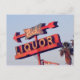 Un ancien panneau néon pour Ricks Liquor à Los Angeles présente une flèche en rouge vintage profond et détruit bleu contre les palmiers dans l'arrière - plan
