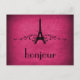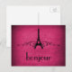 Carte postale française Vintage grungy mais élégante en rose foncé avec un design tour Eiffel agrémenté de tourbillons et de points chic et d'un arrière - plan texturé en faux papier. Cette carte postale à thème parisienne unique est parfaite pour envoyer un bonjour rapide à tous ceux qui ont un soupçon de fantaisie française ! Facile à customiser, ajoutez simplement le texte personnalisé de votre choix dans le champ de texte fourni. Cliquez sur le bouton "Customiser" pour trouver d'autres options de personnalisation.