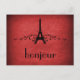 Carte postale française Vintage grondée mais élégante en rouge avec un design Tour Eiffel agrémenté de tourbillons et de points chic et d'un arrière - plan texturé en faux papier. Cette carte postale à thème parisienne unique est parfaite pour envoyer un bonjour rapide à tous ceux qui ont un soupçon de fantaisie française ! Facile à customiser, ajoutez simplement le texte personnalisé de votre choix dans le champ de texte fourni. Cliquez sur le bouton "Customiser" pour trouver d'autres options de personnalisation.