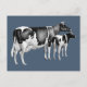 Cette carte postale amusante et rustique présente un dessin vintage d'une vache maman et de son veau en noir et blanc sur un arrière - plan gris bleu. La couleur arrière - plan peut être customisée à n'importe quelle couleur ! Parfait pour les amateurs de vache ou de laiterie !