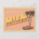 Une carte postale vintage et ensoleillée avec le design classique "Greutages from Miami". Ce format de grandes lettres audacieux reflète parfaitement l'atmosphère vibrante et nostalgique des voyages en Floride du milieu du siècle et du style Art déco. Ce design de collection est parfait pour les amateurs de l'esthétique classique de la ville : Tropical Vibe : Les lettres sont remplies de scènes quintessence de Miami Beach, y compris palmiers, voiliers, vue sur l'océan, et le skyline distinctif. Détails rétros : Au premier plan, une voiture classique et de grands palmiers, mettant l'accent sur le style de vie glamour et décontracté de la Floride du Sud des années 1950/60. Palette de couleurs chaudes : Le design utilise un dégradé orange vif et jaune arrière - plan avec une texture subtile en mauvais état, lui donnant un look authentique et nostalgique. Cette carte postale est une merveilleuse trouvaille pour les natifs de Miami, les amateurs de Floride, les amateurs de voiture vintage, les collectionneurs de cartes postales, ou toute personne à la recherche d'une décoration tropicale et américaine unique. Présentez-le comme une petite affiche ou envoyez un message d'accueil ensoleillé !