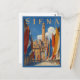 Revenez dans le temps avec cette magnifique affiche de voyage de style vintage célébrant Sienne, Italie. L'oeuvre capture l'emblématique Piazza del Campo, encadrée par l'architecture médiévale, un clocher qui monte en flèche et une bannière rouge et bleue qui flotte dans le vent. Inspiré par la propagande touristique italienne classique, cet article mêle grandeur historique et esprit artistique, parfait pour les voyageurs, les amateurs d’art ou toute personne captivée par le charme toscan, et ajoute une élégance intemporelle à tout espace.