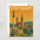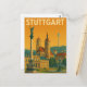 Belle et élégante oeuvre d'art vintage de Stuttgart Allemagne sur une carte postale montrant l'architecture extraordinaire avec des monuments comme le château ou la tour de télévision et le paysage urbain de la ville dans le Bade Wurtemberg. Super idée souvenir et cadeau.