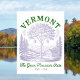 Embrace the timeless charm of Vermont, The Green Mountain State, with this exquisite travel souvenir postcard! Featuring vintage-style engraved illustrations that capture the essence of New England, you'll find an iconic maple tree with tapping buckets, nestled amongst rolling green mountains and a rustic sugar shack cabin.