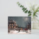 Cette image vintage de carte de Noël montre la scène de la lune de neige lorsque les invités arrivent par cheval et traîneau pour une fête de Noël à la maison victorienne lumineuse. Parfait sur cette carte postale de vacances. Personaliz avec votre message, salutation, signature, et informations d'adresse - imprimer et il est prêt à poster. Ajoutez aussi le timbre correspondant !