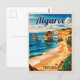 Entrez dans l'âge d'or du voyage avec cette carte postale d'inspiration vintage célébrant l'Algarve au Portugal. Doté de falaises ensoleillées et d'eaux turquoises, cet article saisit le charme et l'aventure de la région.