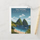 Découvrez cette étonnante oeuvre d'art de voyage vintage des Pitons Saint Lucia sur une carte postale qui présente le magnifique paysage de la destination de voyage des caraïbes. Ce produit fonctionne comme un souvenir de voyage et une idée cadeau pour chaque touriste et visiteur de la célèbre destination de voyage. Ajoutez votre texte personnalisé et achetez dès maintenant.