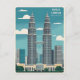 Carte Postale Vintage voyage Kuala Lumpur Malaisie Retro Graphis