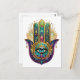 Carte Postale Violet Green Gold Petals Hamsa Turquoise Third Eye