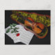 Carte Postale Violon et rose rouge sur arrière - plan noir
