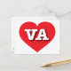 Cette carte postale est dotée d'un coeur rouge vif contenant les lettres coques en haut, blanches et audacieuses VA, l'abréviation officielle de Virginie, l'État du Vieux Dominion. Le verso de la carte postale est vide, en attendant votre texte customisé ou vos sentiments manuscrits.