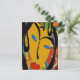 Carte Postale Visage Abstrait et fleurs