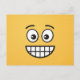 Un visage avec les yeux ouverts et une grande bouche ouverte (grinçante), montrant les dents.