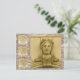 Visages architecturaux de plusieurs bâtiments. Sur le côté gauche de la carte figurent trois petites images de détails de clefs de voûte (têtes de moines). La majeure partie de la carte montre une image plus grande d'une tête féminine avec une couronne de feuilles d'olive. Toutes les images sont encadrées de briques d'argile rouges horizontales.