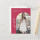 Yay ! Elle a finalement obtenu son diplôme d'études secondaires, collégiales ou universitaires, ou un programme d'études supérieures. Il est donc temps d'informer sa famille et ses amis qu'elle l'a fait ! Célébrez l'un des moments précieux de sa vie et envoyez cette carte postale de faire-part de remise de diplômes. Cette carte postale présente une élégante faire-part de graduation minimaliste moderne avec un magnifique script de calligraphie et la photo du diplômé en forme d'arc sur un arrière - plan viva magenta. Il suffit de customiser et de remplacer le texte et la photo dans la zone de personnalisation. Veuillez noter : Les phrases élégantes du script de calligraphie "elle l'a fait" et "diplômée" ainsi que les lignes et autres illustrations graphiques et éléments ne peuvent pas être modifiés, supprimés, ou déplacés. Elles sont réparées.