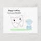 Une carte mignonne avec une dent de visage souriante avec une brosse à dents verte avec dentifrice et fil dentaire. Customisez comme vous le souhaitez.