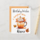 Cette carte postale d'anniversaire d'automne est conçue pour la personne qui aime la citrouille épicée dans votre vie. Tout le texte peut être personnalisé, ainsi que les couleurs de fond. La tasse et les feuilles peuvent être ajustées en taille et en placement. Le verso de la carte peut être personnalisé avec le nom de votre proche ou votre propre message personnalisé.