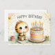 Cette charmante carte d'anniversaire apporte une touche "mielleuse" à toute célébration. Elle présente un personnage de abeille adorable avec de grands yeux brillants et un doux sourire, orné d'une couronne de fleurs. L'abeille fait un vœu, assise à côté d'un gâteau d'anniversaire vibrant et coloré pastel avec des bougies allumées prêtes à être soufflées. Un petit cupcake avec un nœud rose et un cadeau soigneusement emballé ajoutent à l'atmosphère festive. Le fond est rempli de confettis doux et de éclaboussures d'aquarelle, créant une scène fantaisiste et chaleureuse parfaite pour envoyer des vœux d'anniversaire joyeux à quelqu'un de spécial.