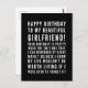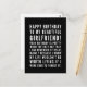 Vœux d'anniversaire drôles et sarcastiques pour petite amie. Carte idéale pour un petit ami qui CONNAÎT les conséquences de l'oubli de son anniversaire (ou de tout événement important) ! Typographie noire et blanche élégante et directe, "Joyeux anniversaire à ma belle petite amie ! Votre anniversaire est à peu près le seul que je puisse me rappeler par cœur, principalement parce que je sais que ma vie ne vaudrait pas la peine d'être vécue si je devais l'oublier un jour ! " C'est comme ça que je fais ? Découvrez d'autres conceptions et illustrations dans ma boutique :)