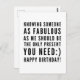 Vœu d'anniversaire sarcastique pour un petit ami, mais vous pouvez être audacieux et l'offrir à votre petite amie aussi ! Typographie noire et blanche élégante et concise " Connaître quelqu'un d'aussi fabuleux que moi devrait être le seul cadeau dont vous avez besoin :) Joyeux Anniversaire !"