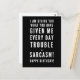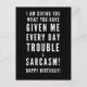 Vœu sarcastique de joyeux anniversaire pour un ami - "Je vous donne ce que vous m'avez donné chaque jour, des ennuis et du sarcasme ! Joyeux anniversaire !" Parfait pour vos amis qui parlent couramment le sarcasme ! Sentiment de typographie noir et blanc classe et direct. Vous aimez mon style ? Découvrez d'autres conceptions et illustrations dans ma boutique :)