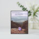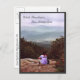 Cette carte postale présente la photographie d'une des merveilleuses randonnées dans les Montagnes Blanches du New Hampshire. Un randonneur a suivi le sentier Nancy Pond jusqu'à la sortie de Norcross Pond qui offre des vues spectaculaires sur la nature de Pemigewasset, le mont Bond, la chaîne Twin Range et la chaîne de montagnes Franconia. Il a posé son bâton de randonnée sur les rochers et se repose sur une grande dalle de granit. Il porte un bandana rouge et une chemise violette lilas qui dit : Support Jazz. La vue est magnifique avec ciel et montagnes dans une gamme de couleurs bleu, vert et mauve.
