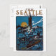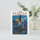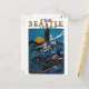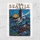 Un poster vintage qui fait la promotion d'un voyage à Seattle, Washington en 1915. Belle vue sur le port et l'architecture de Seattle comme vu la nuit avec une pleine lune se levant dans l'arrière - plan.