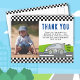 Voiture de course Vroom Vroom sur une carte de voeux de garçon Photo d'anniversaire. Cette carte de remerciement est parfaite pour un petit garçon qui aime les voitures de course ! Le dessin de la voiture sur la route dans la nature. Le texte « Vroom Vroom Vroom » rappellera à votre proche le plaisir qu'il a eu le jour de son anniversaire. Personnalisez la carte avec une photo, un message de remerciement et un nom. Ajoutez votre âge sur la voiture.