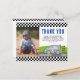 Carte postale de remerciement pour un garçon qui aime les voitures de course ! Cette carte de remerciement est parfaite pour un petit garçon qui adore les voitures de course. Le dessin de la voiture sur la route dans la nature. Le texte « Vroom Vroom Vroom » rappellera à votre proche le plaisir qu'il a eu le jour de son anniversaire. Personnalisez la carte postale avec une photo, un message de remerciement et un nom. Ajoutez votre âge sur la voiture.