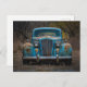 Cette image saisissante présente une vue frontale d'une vieille voiture vintage en bleu brillant, sa finition autrefois lisse désormais enveloppée d'une riche tapisserie de rouille et de patine. Dans un décor sauvage et surélevé, le véhicule abandonné évoque la nostalgie, l'histoire et le charme hantant des lieux oubliés.
