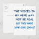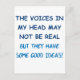 Entendre des voix mais comme ce qu'ils disent ? Amuse-toi bien avec ta folie ! Lit "Les voix dans ma tête ne sont peut-être pas réelles, mais elles ont de bonnes idées !" Disponible en imprimé bleu ou rouge et orange.