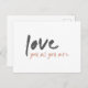 Moderne et minimaliste "Aimez-vous comme vous êtes" citation carte postale inspirante dans un style noir élégant avec un accent rose pâle dans une typographie de style peint à la main avec style minimaliste scandinave et inspiré par romance, encouragement, inspiration, motivation, amitié, gentillesse et voyage. Une partie de la collection Love Design qui comprend une large gamme de produits avec une gamme complémentaire de marque inspirée de l'amour ! | Mots clés associés : pour toujours, parfait, inconditionnel, amour, amoureux, amoureux, romantique, mignon, rose, roux, gris, gris, nuances, muet, élégant, scandi, simple, magnifique, adorable, girly, féminin, minimal, mode, couples, mariage, relations, partenariat, éternel, éternel, éternel, Je t'aime, Te amo, Ich liebe ich, Amor, amore, amour, eros, Philip, stockage, agape, non demandé, chagrin, réallumer