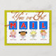 Design de timbre de quatre enfants caricaturés tenant des lettres pour former le mot "mail" dans cette belle carte postale "You've got Mail". Idéal pour le Post-croisement.