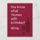Carte Postale Vous Connaissez Quelles rimes avec l'anniversaire?